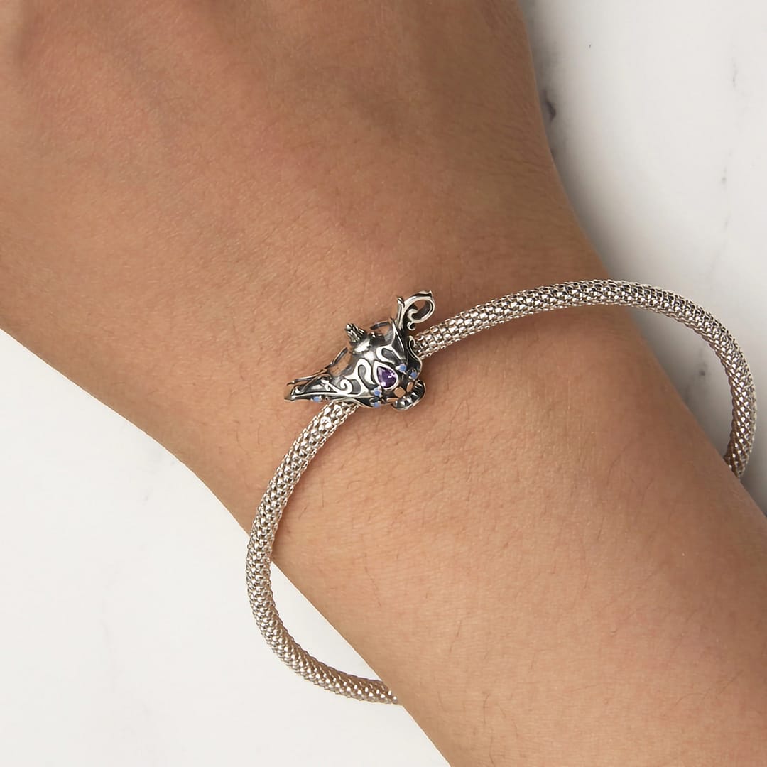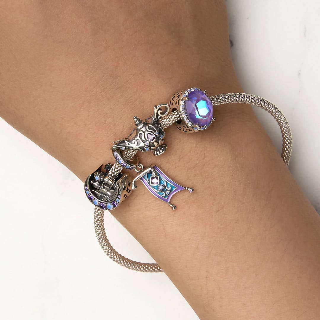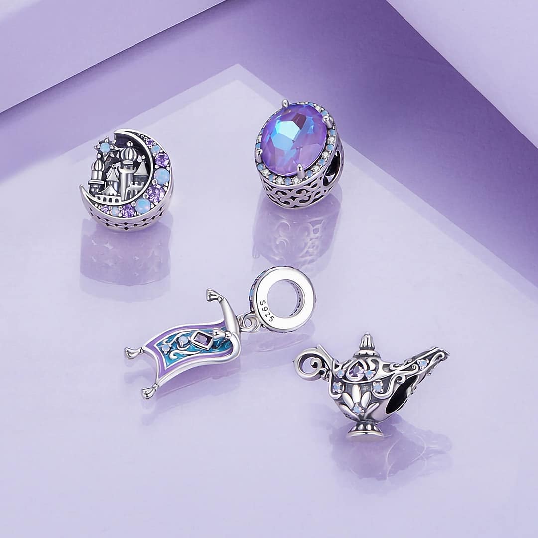 Adorned with intricate details, including opal stones and purple cubic zirconia, this charm exudes an aura of magic and fantasy. The lamp symbolizes wish fulfillment, offering a reminder that dreams can come true with a touch of whimsy and belief.