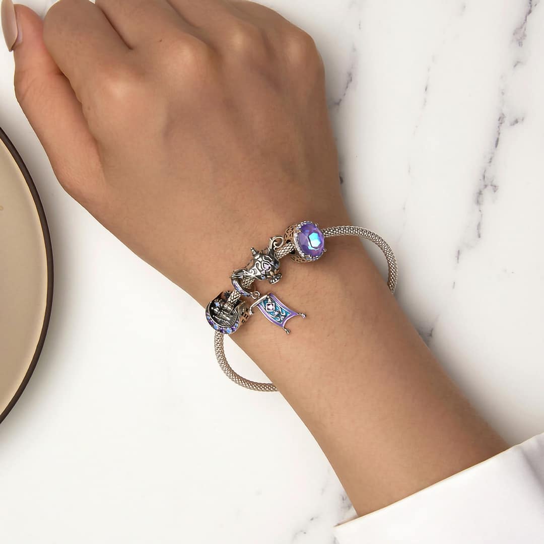 Step into the enchanting world of Arabian Nights with our captivating Arabian Nights Magic Genie Lamp Charm, a mesmerizing addition to our Arabian Nights Charms Collection. Crafted from exquisite s925 sterling silver, this charm embodies the allure of the mystical lamp from the tales of Aladdin and the One Thousand and One Nights.