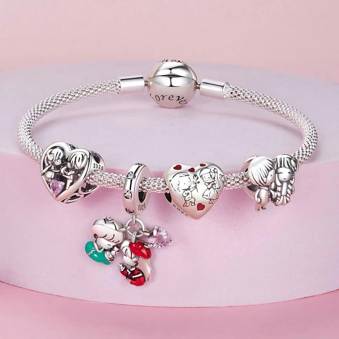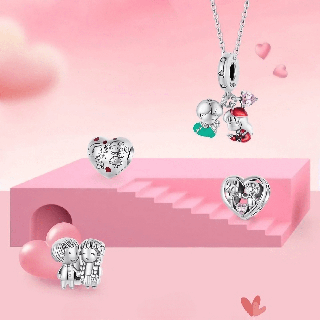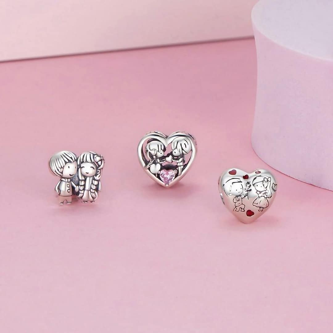Perfect for anyone enamored by the enchantment of young love, this charming piece is ideal for adorning charm bracelets or necklaces, adding a touch of whimsical romance to any ensemble. Whether celebrating a special occasion or simply expressing affection, this heartwarming charm is a thoughtful gift for birthdays, anniversaries, Valentine’s Day, or any momentous milestone.