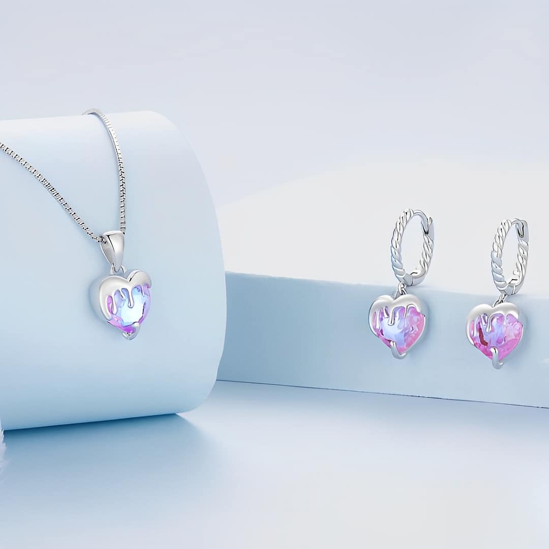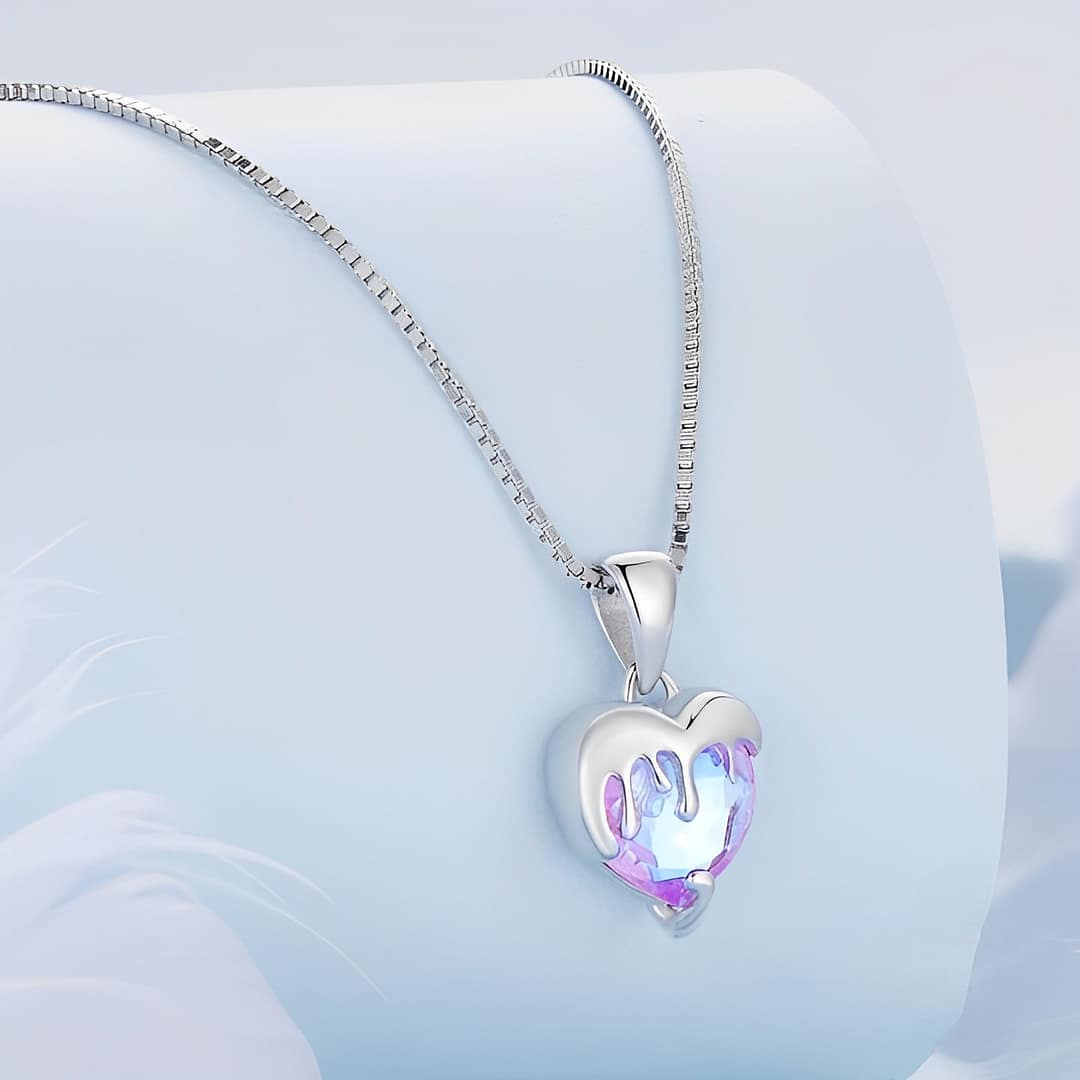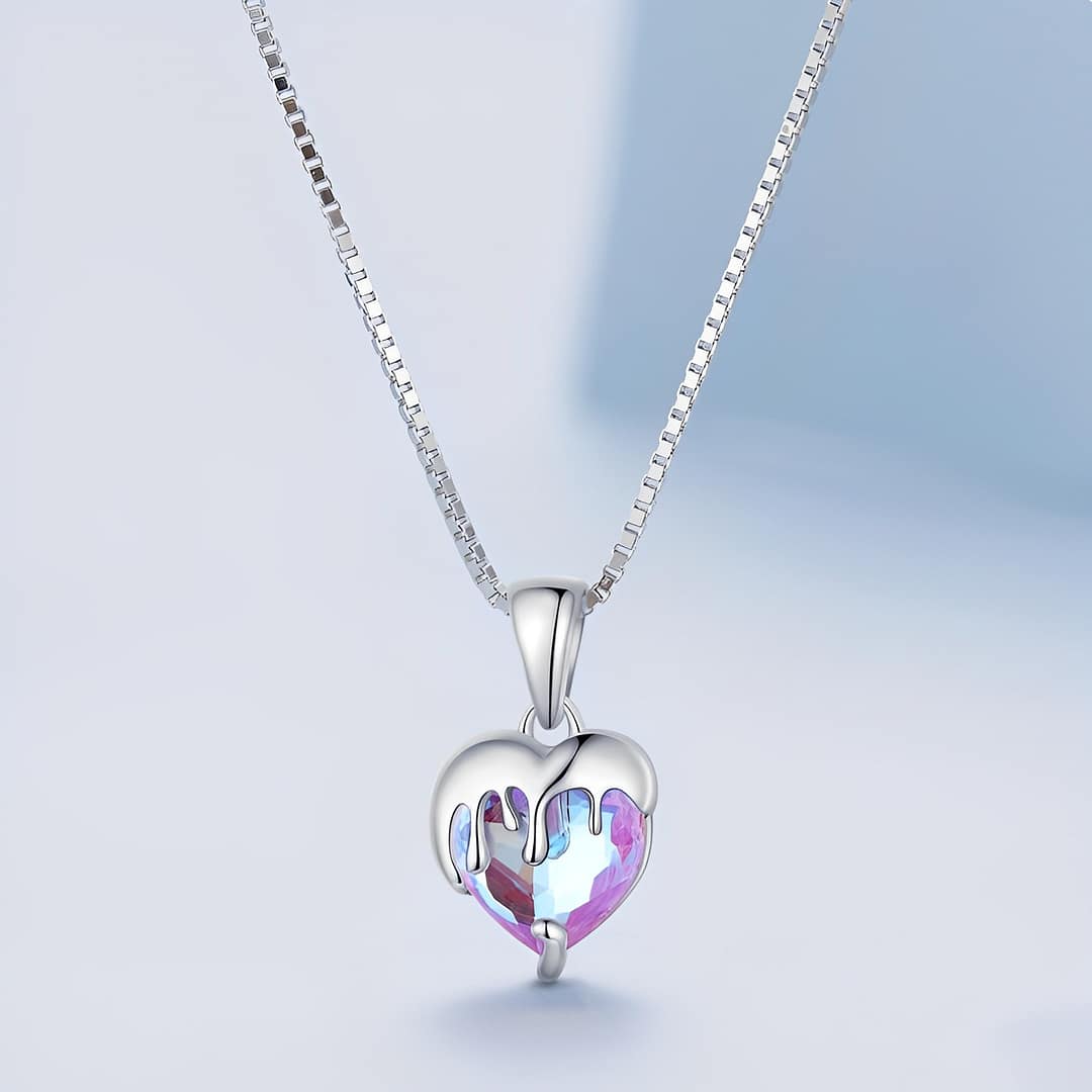 💎 Tags: Unique heart-shaped necklace, Pink glass pendant jewelry, Sterling silver heart necklace, Melting heart pendant, Romantic jewelry for women, Playful Valentine’s Day gift, Adjustable chain necklace, Special occasion jewelry, Lightweight and comfortable necklace, Gorgeous glass heart necklace, Delicate silver icing pendant, Beautiful gift box packaging, Perfect birthday present for her, Charming and elegant accessory, Eye-catching and conversation-starter piece, women’s necklace, gift for her.