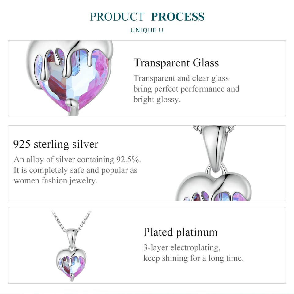 💎 Made of high-quality S925 sterling silver (composed of 92.5% silver and 7.5% other metals), Transparent Glass, and plated platinum, this necklace is durable and built to last.