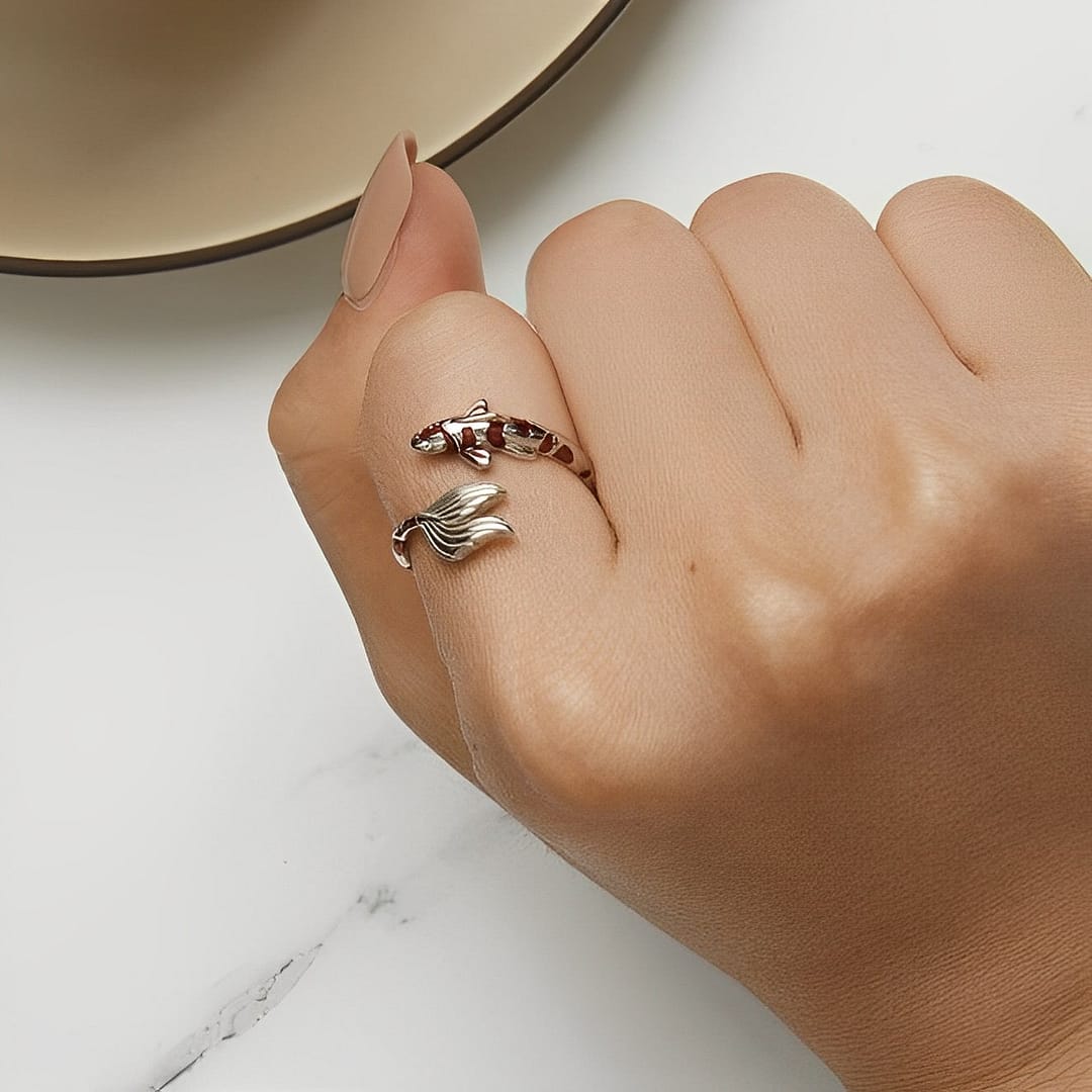Symbolically, the red koi fish represents courage, determination, and perseverance, making it a perfect accessory for those seeking strength and resilience. This fish-themed ring is a statement piece that effortlessly combines fashion and nature-inspired design. Its eye-catching red hue and exquisite craftsmanship make it a must-have for any trendy jewelry collection.