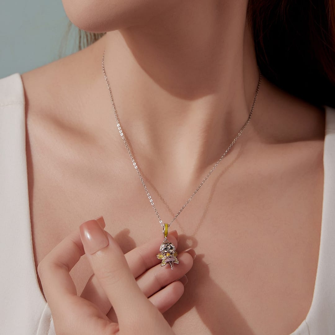 Handcrafted from S925 sterling silver and finished with luminous enamel, this fairy represents happiness, vitality, and hopeful beginnings. She serves as a reminder that even the smallest spark of light can lift the spirit and guide the way forward.